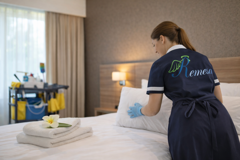 Remesa, otel ve konaklama sektöründe oda temizliği, banyo & WC temizliği, ortak alan temizliği, restoran & mutfak temizliği, çamaşırhane işleri ve hijyen & dezenfeksiyon alanlarında güvenilir iş fırsatları sunar. Doğru yönlendirme ve destekle, adayların Avrupa’da çalışma hayatına hızlı uyum sağlamasına yardımcı olur.